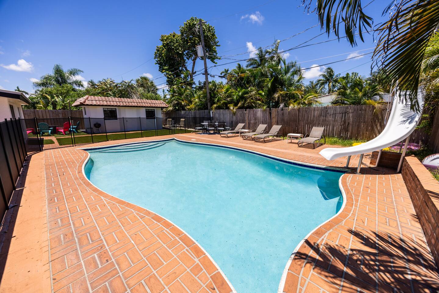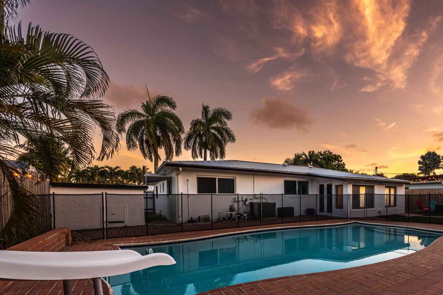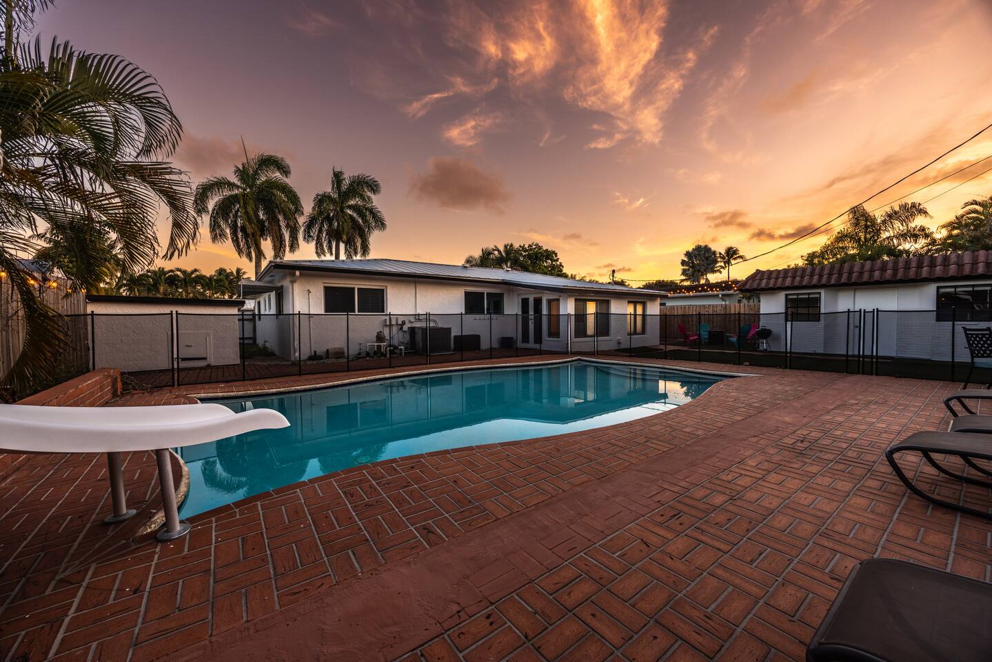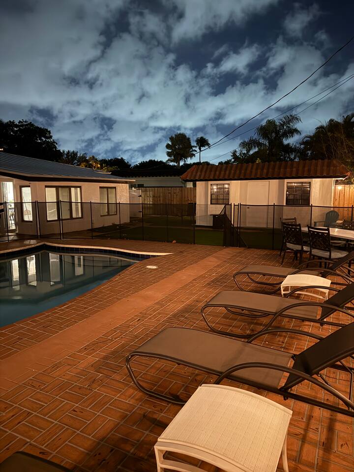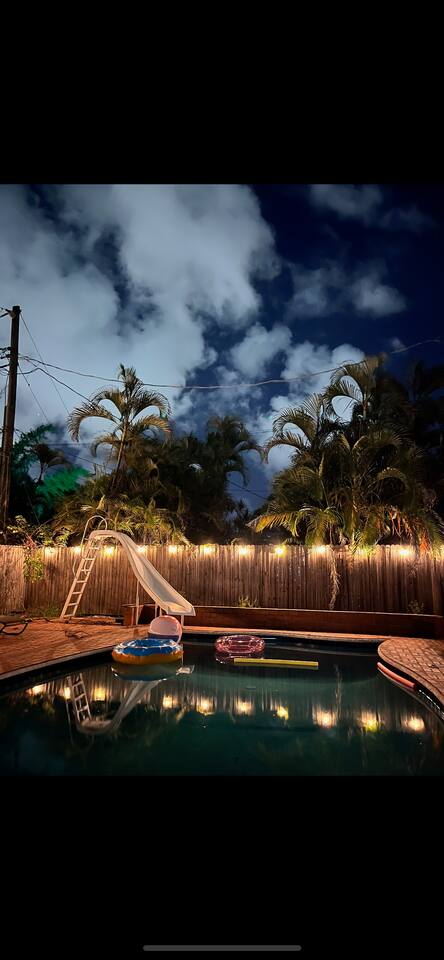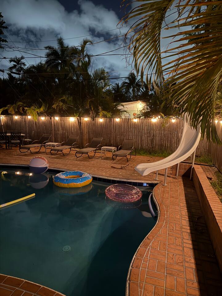 Welcome to Beach Breeze Inn! This fun and relaxing 3 bed, 2 bath retreat in Pompano Beach is newly renovated and features a private movie theater, game room w/arcade games and foosball, sparkling pool w/slide, corn hole and a cozy fire pit—perfect for unwinding after a day in the sun. Just a 10-minute drive to the beach and close to all the excitement of Fort Lauderdale, but tucked away from the crowds and chaos. Sleeps 6-8. Your perfect Florida escape starts here!