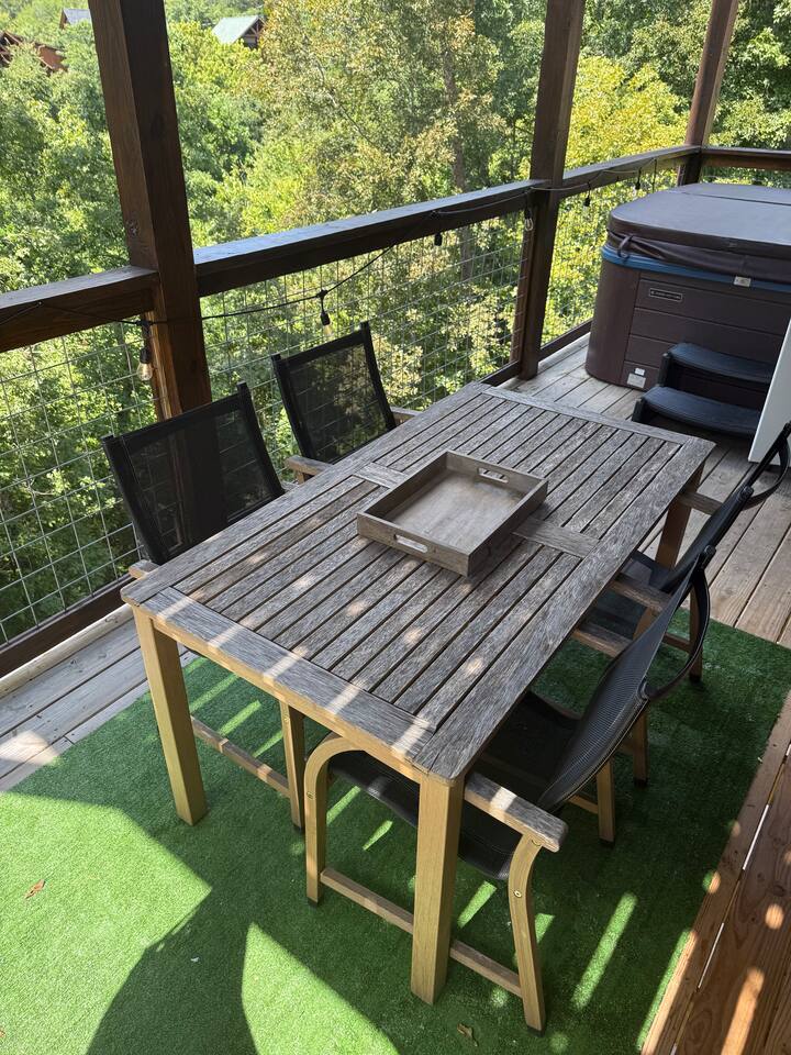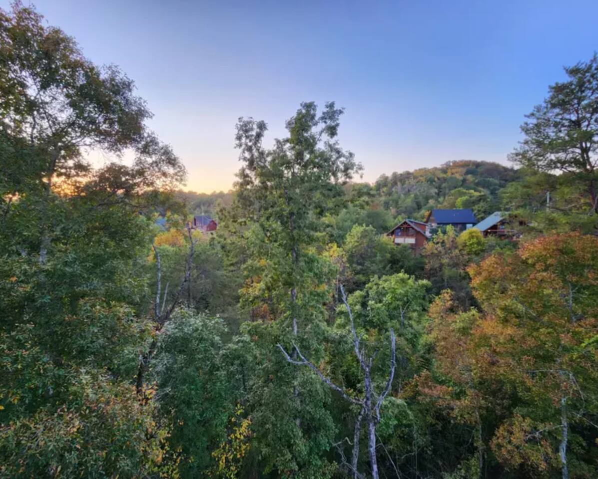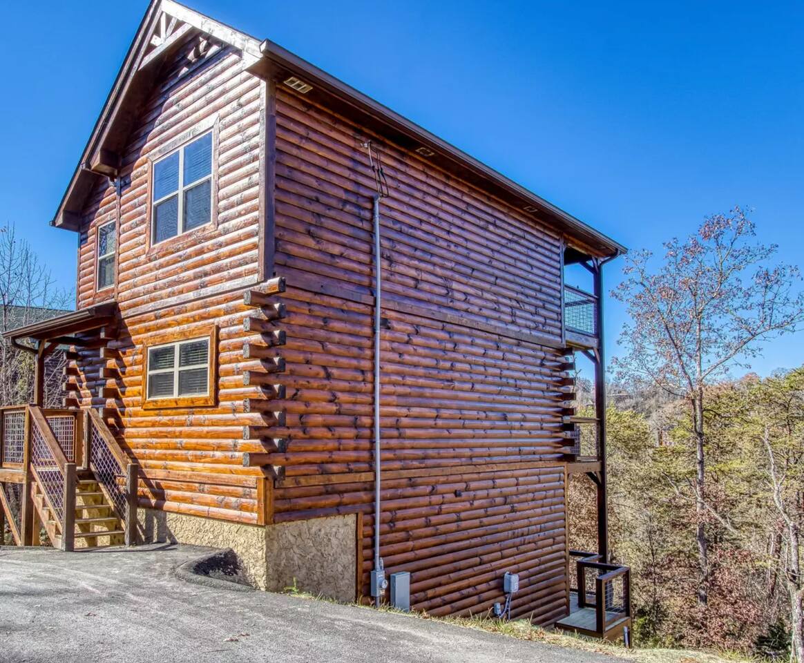 Enjoy sunsets on your choice of 3 decks at Splash Mountain Pool Cabin! This amazing log cabin is in close proximity to almost all attractions of the Smoky Mountains including the Sevierville Convention Center-and it's brand new. Perfect for a family vacation, a private pool, game room, upgraded finishes, foosball, arcades, propane fire pit AND a hot tub w/views-so comfortable you may not want to leave! Spacious accommodations and sleeps 8! (2) FREE passes to Soaky Mountain - May - September