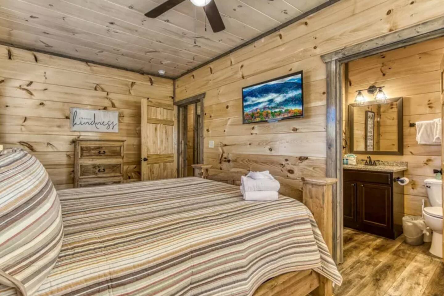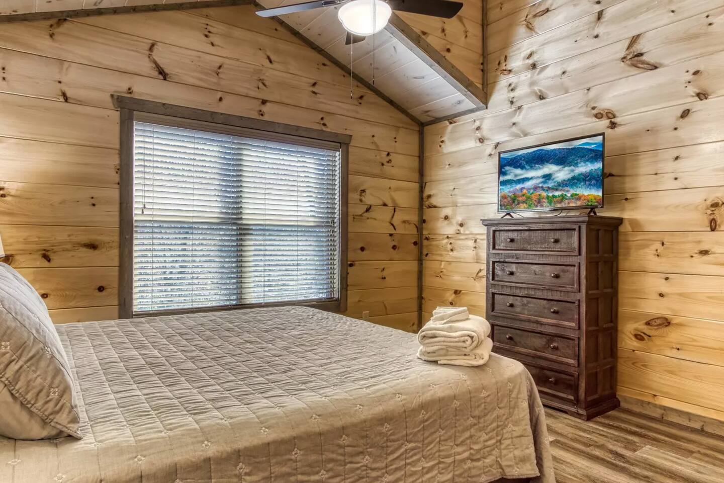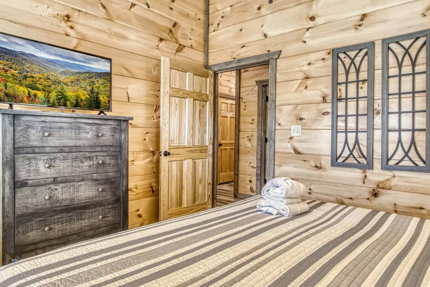 Enjoy sunsets on your choice of 3 decks at Splash Mountain Pool Cabin! This amazing log cabin is in close proximity to almost all attractions of the Smoky Mountains including the Sevierville Convention Center-and it's brand new. Perfect for a family vacation, a private pool, game room, upgraded finishes, foosball, arcades, propane fire pit AND a hot tub w/views-so comfortable you may not want to leave! Spacious accommodations and sleeps 8! (2) FREE passes to Soaky Mountain - May - September