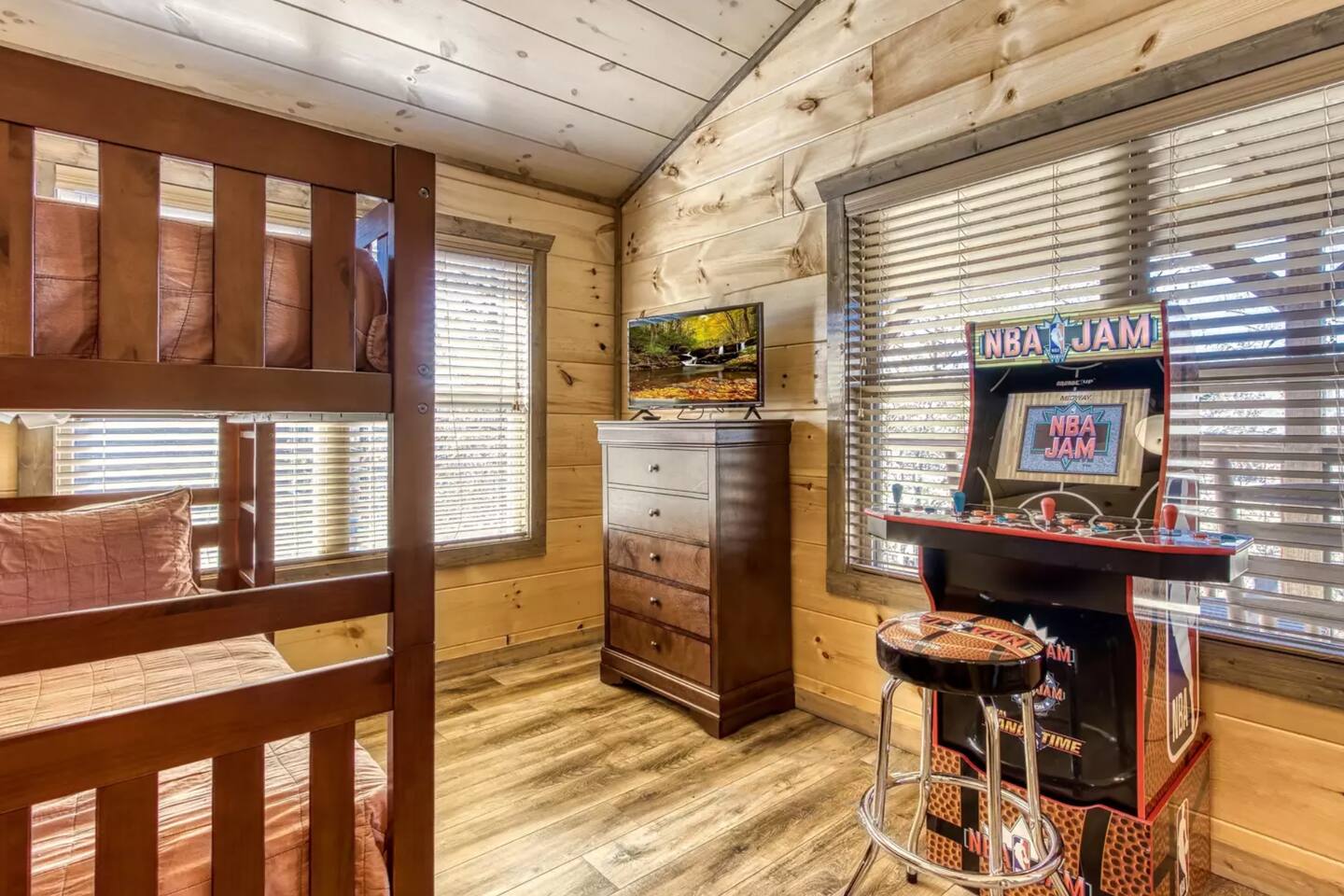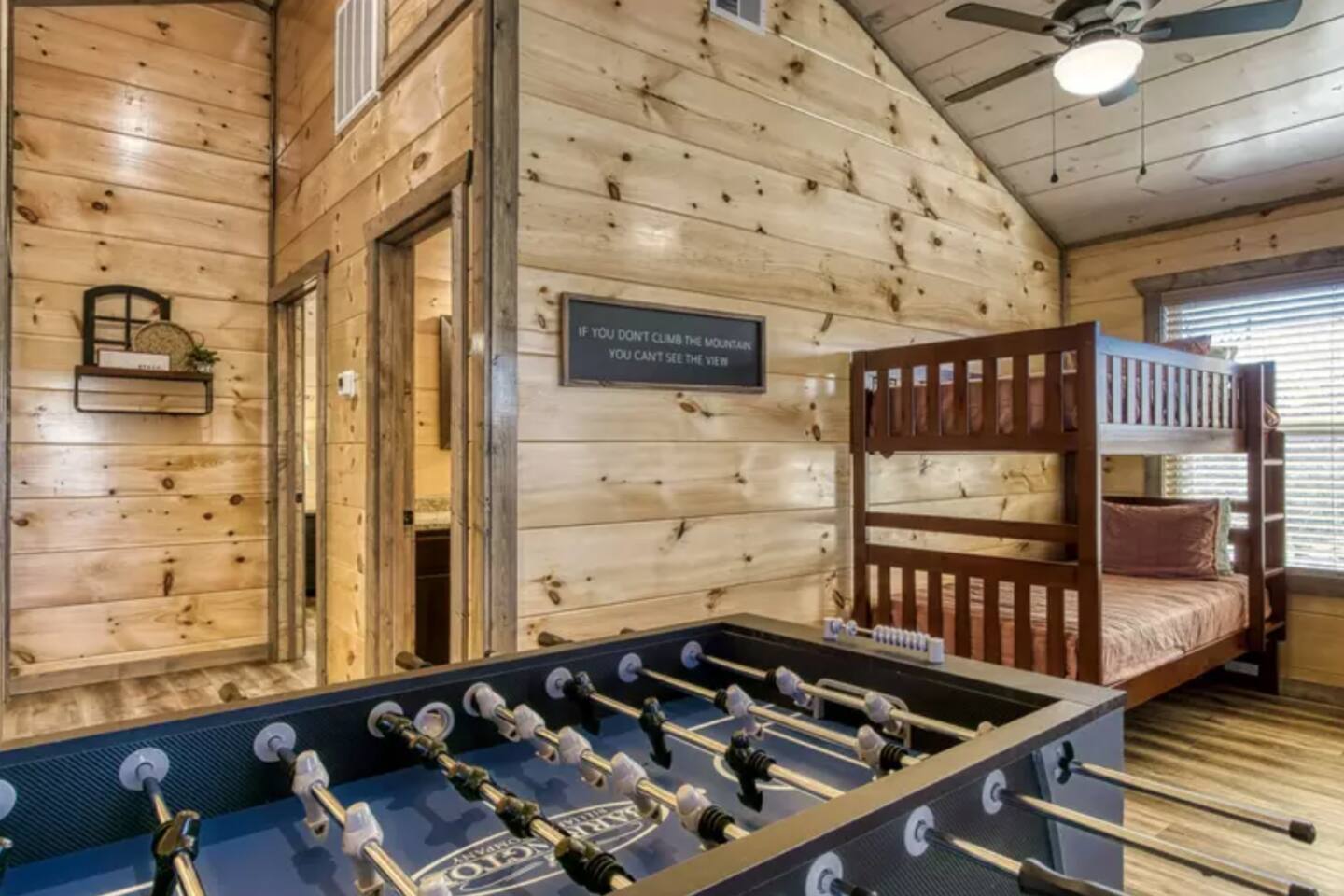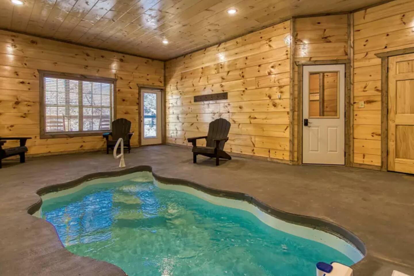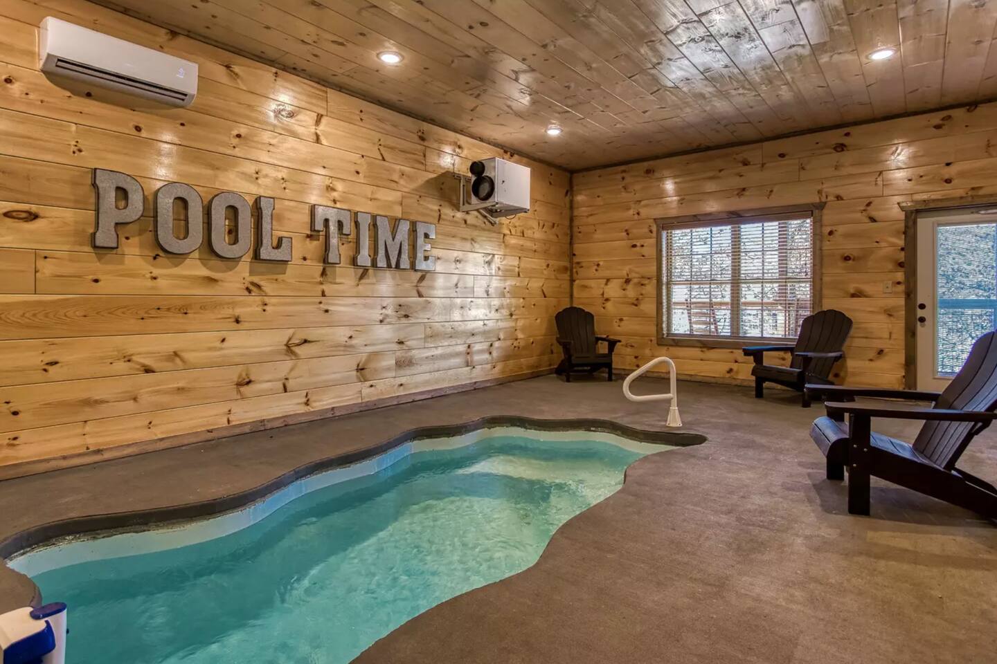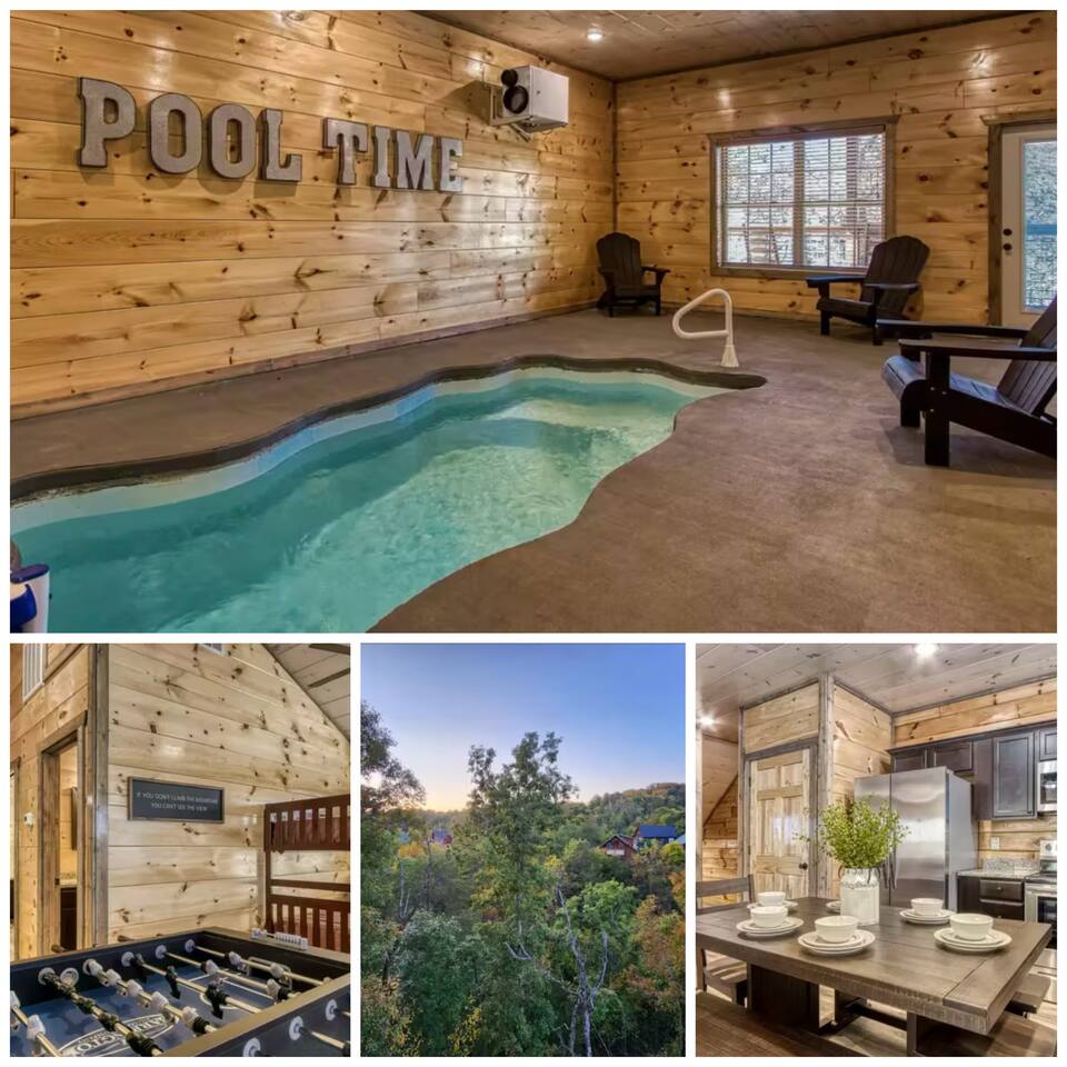 Welcome to Splash Mountain Pool Cabin Breathtaking sunsets and sweeping mountain views await at Splash Mountain Pool Cabin, your luxurious Smoky Mountain retreat. This stunning log cabin features 3 spacious decks, a private indoor pool, and countless amenities for a memorable family getaway. With upgraded finishes, a game room, and space to comfortably sleep 8, this is the ultimate destination for relaxation and fun. *Spacious Accommodations* Main Level: - Large, open-concept living room, dining area, and fully equipped kitchen—perfect for family meals and bonding time. - Queen bedroom with a private bath, ideal for guests with mobility needs. - A convenient half-bath for shared use. Upper Level: - Two king bedrooms with a shared bath. - Game area featuring a multi-game arcade, foosball table, and cozy bunk beds for extra sleeping space. Lower Level: - Your own private indoor pool and a relaxing hot tub with serene mountain views. - A half-bath for easy access while enjoying the pool. *Unmatched Entertainment and Comfort* From the game room packed with fun to the soothing hot tub overlooking the mountains, Splash Mountain Pool Cabin is designed to entertain guests of all ages. Each of the 3 decks offers stunning views, inviting you to sip your morning coffee or unwind at sunset surrounded by the beauty of the Smokies. When you're ready to relax, enjoy the massage chair or go for a round of corn hole on the deck. This newly built retreat offers privacy and peaceful views. It is located a away from the bustling hubs of Pigeon Forge and Gatlinburg. Key distances include: - 11 minutes to Soaky Mountain Waterpark. - 15 minutes to Wahoo Ziplines. - 17 minutes to Sevierville, where you’ll find local dining, shops, and the Sevierville Convention Center. - 25 minutes to Tanger Outlets. - 30 minutes to Pigeon Forge, home to Dollywood and other attractions. The location offers an escape from the busy crowds, making it perfect for those seeking a tranquil getaway while still being within a short drive of many exciting activities. Why Choose Splash Mountain Pool Cabin? Whether you’re swimming in the private indoor pool, battling it out in the game room, or simply soaking in the hot tub under the stars, Splash Mountain Pool Cabin has something for everyone. Book your stay today and create memories in a cabin as unique and unforgettable as the Smokies themselves! *During the winter months, you may find some lady bug friends that make there way inside. They are harmless but if it bothers you, we'd be happy to have someone take care of them for you. Now offering (2) free passes to Soaky Mountain. (May - September)