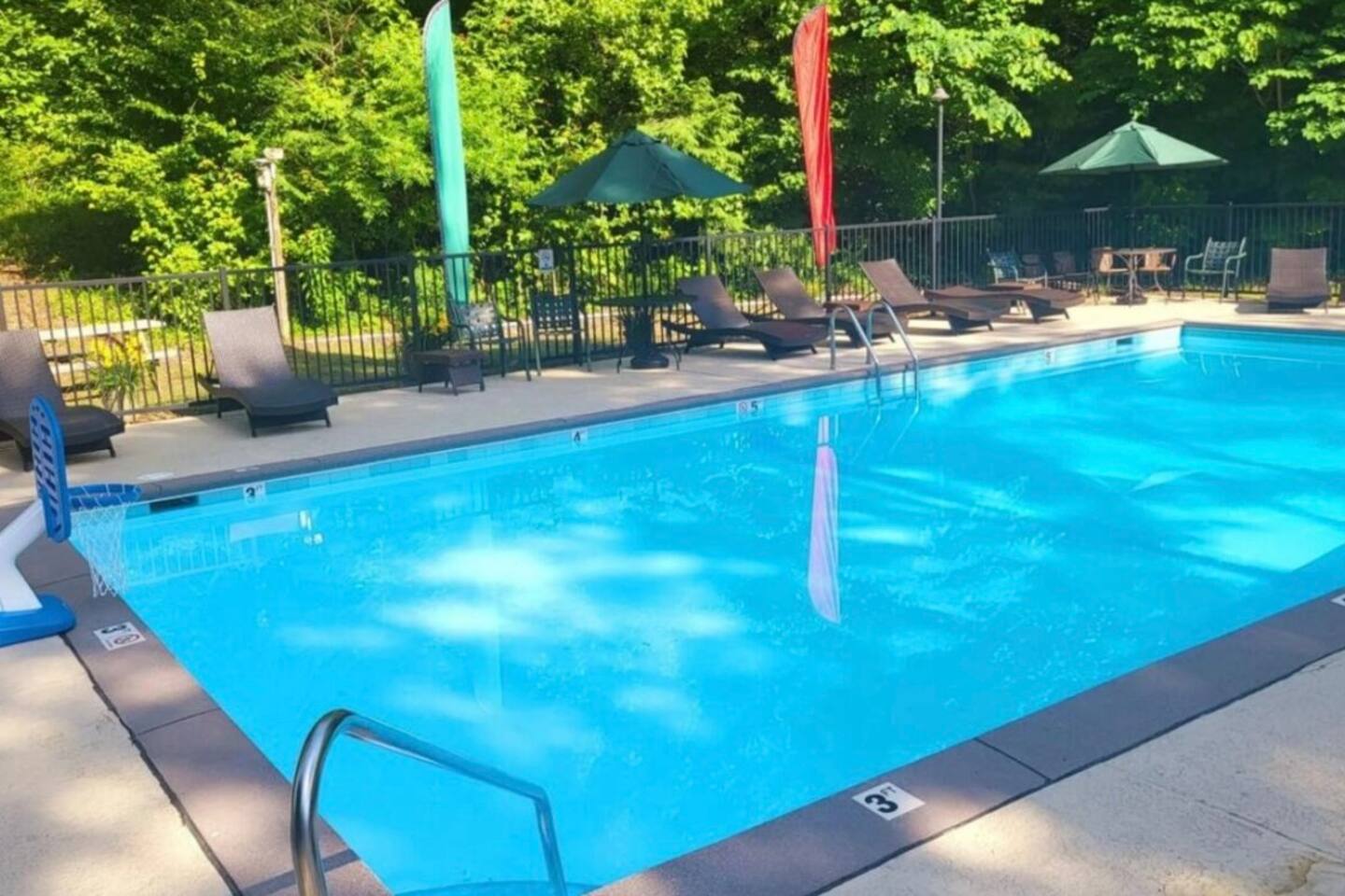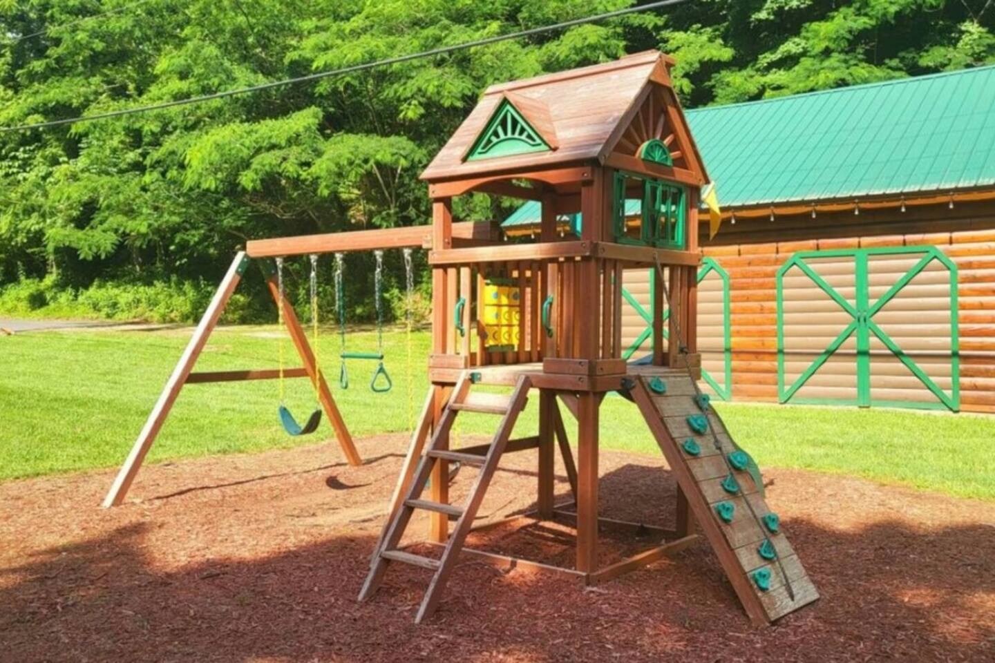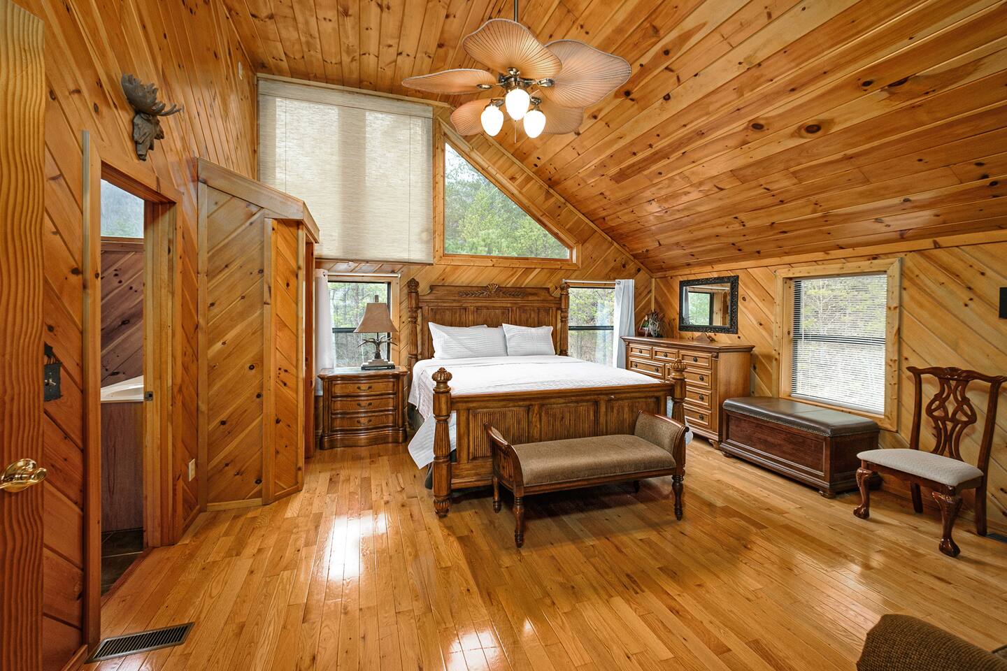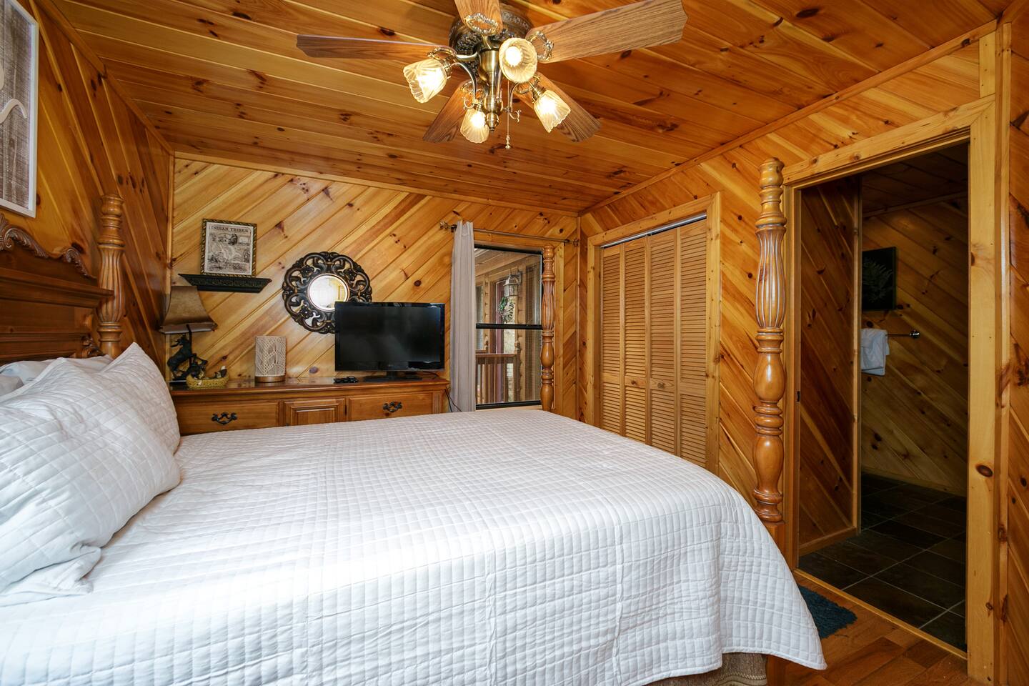 A-Frame secluded cabin w/ views in Shagbark resort. Three bedrooms w/loft, ensuite bathrooms, generous parking & jetted bathtub. •Covered hot tub w/outdoor seating & dining •TWO game rooms-pool table, arcades, Hydro Thunder, air hockey, foosball, poker, & streaming TV’s •Resort amenities include swimming pool (open memorial day to labor day), tennis/pickleball courts, playground, & frisbee golf •Wraparound deck w/new fire pit, swing, cornhole & private backyard!