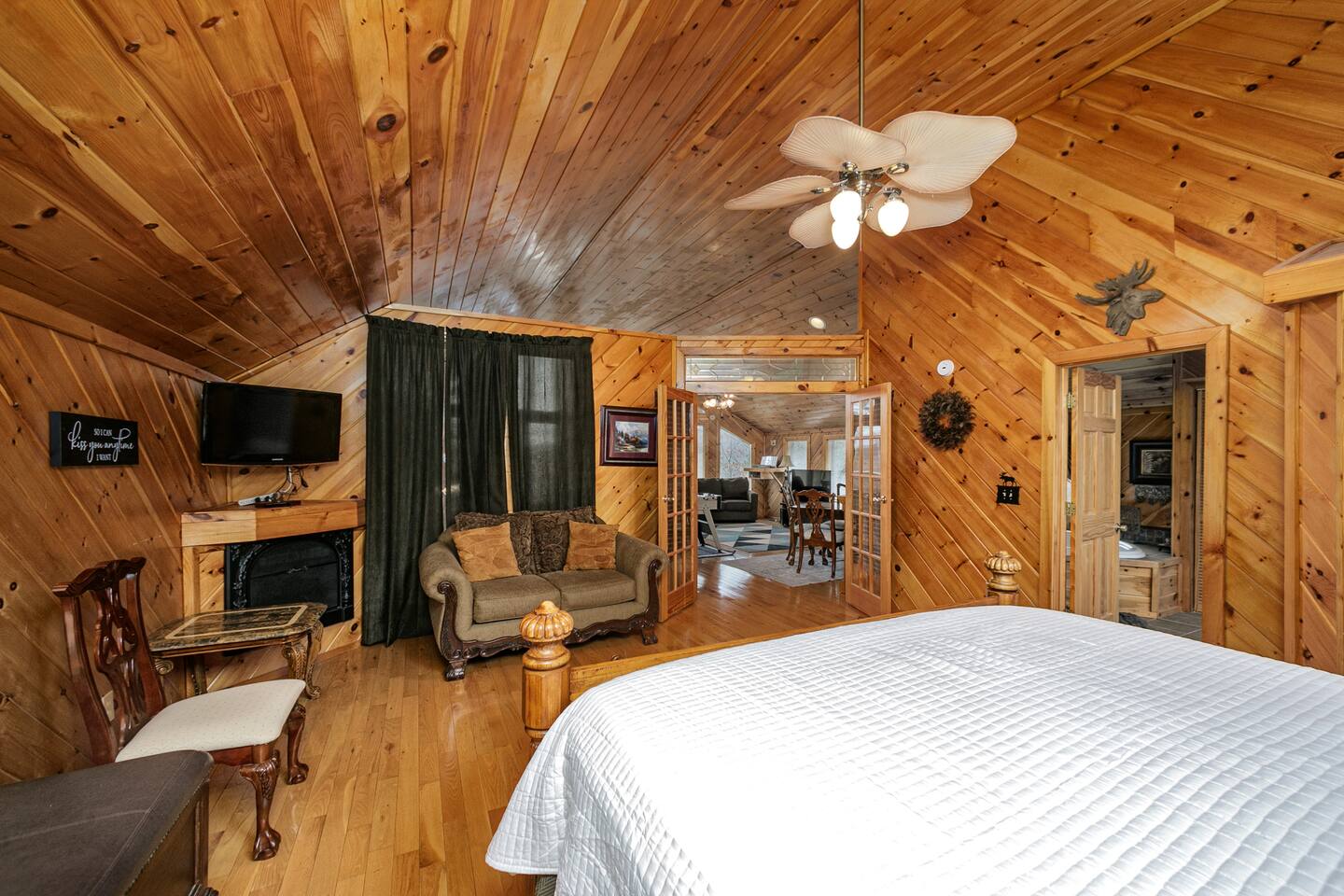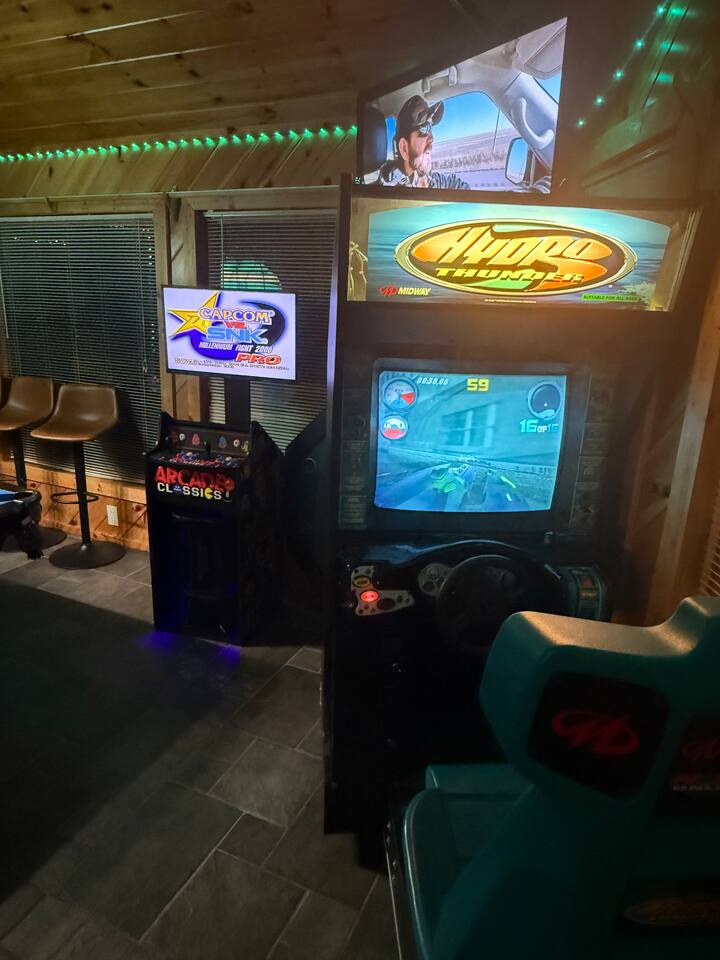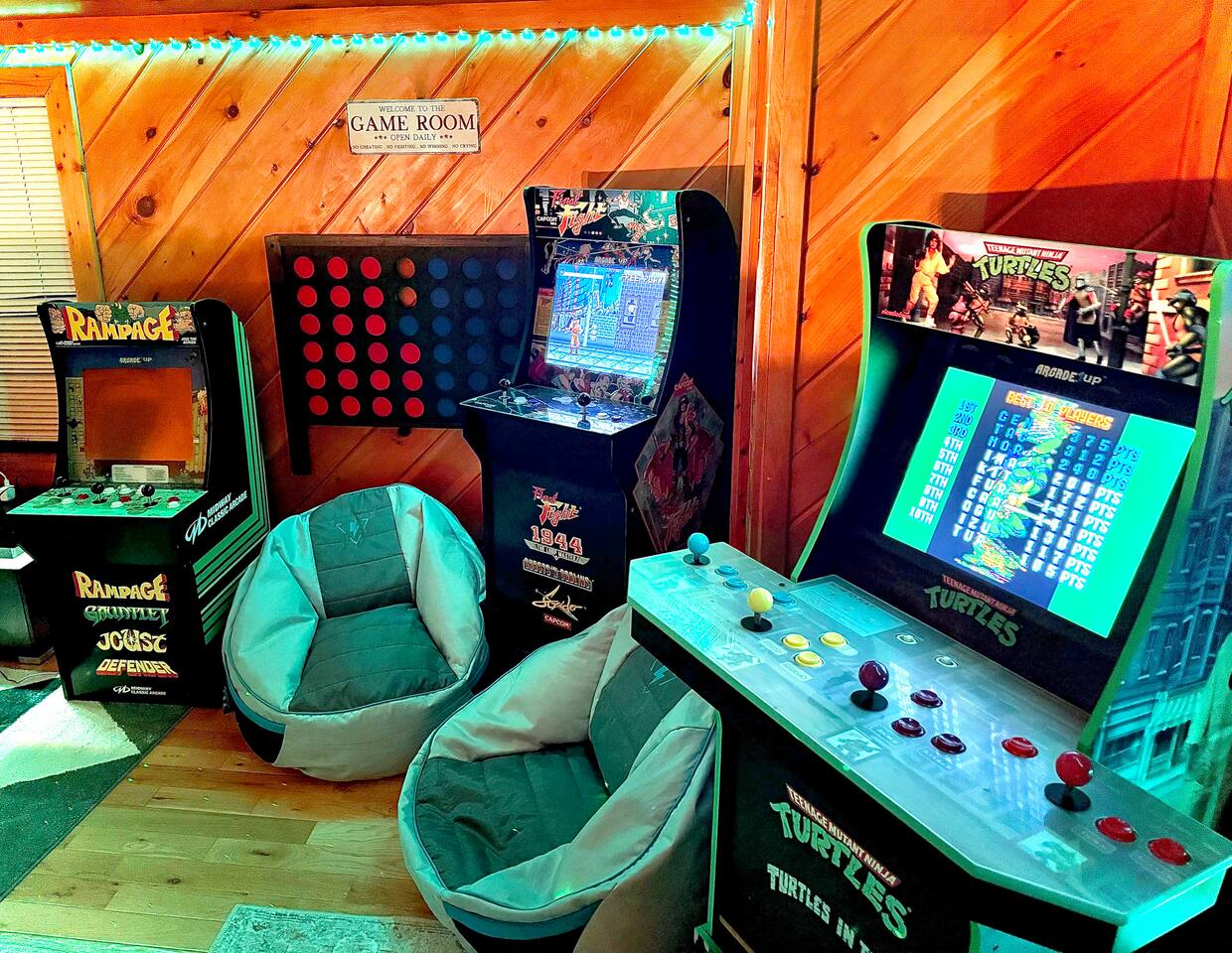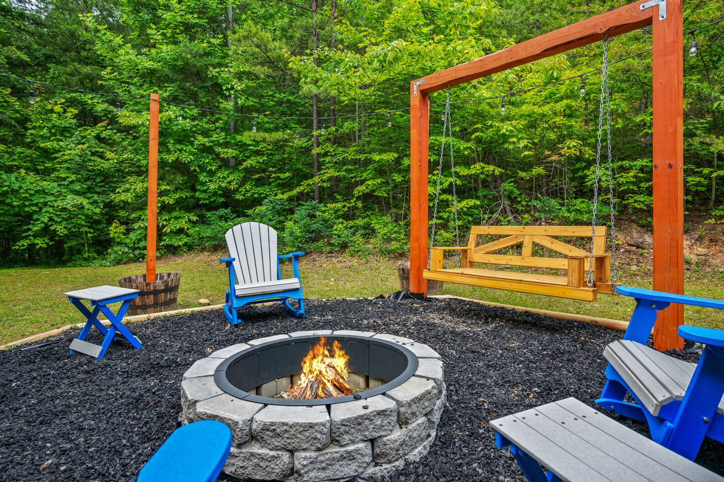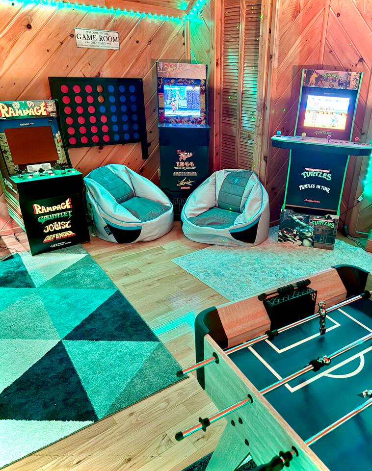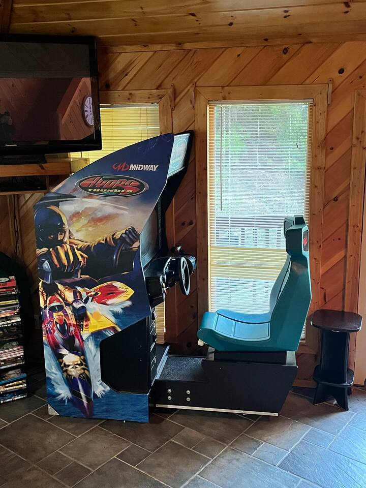 Welcome to Mountain Music Perched at the top of the gated Shagbark Resort, Mountain Music combines modern comfort, breathtaking views, and timeless Smoky Mountain charm. This four bedroom, three bathroom A-frame cabin is the perfect retreat for families, couples, or friends seeking relaxation, adventure, and unforgettable memories. *Spacious Comfort and Modern Amenities* - Three Bedrooms with En-Suite Bathrooms: Each bedroom offers privacy, comfort, and thoughtful touches for a restful stay. -Loft with bunk beds, streaming TV, air hockey, foosball, three arcades, giant connect 4, sleeper sofa, and electric fireplace for the kids to play - Open Floor Plan: The spacious living area seamlessly connects to the fully equipped kitchen and dining space, making it perfect for gatherings. - Game Room: Billiards table, multicade, Hydro Thunder sit down racing arcade, and streaming TV. - Private Hot Tub: Relax under the gazebo in the outdoor hot tub while soaking in the serene mountain views. Outdoor seating too! -Deck views: Outdoor dining with views, gas grill, and propane fire pit on the wraparound deck. -Backyard: With large fire pit, swing seat, and mini golf for fun! - Convenience at Your Fingertips: High-speed Wi-Fi, a washer and dryer, and ample parking ensure your stay is stress-free. -full fire pit Please note that the fireplace is currently undergoing maintenance and unavailable for use. *Experience Smoky Mountain Serenity* - Breathtaking Views: Marvel at panoramic mountain vistas from the wrap-around porch and loft area, perfect for morning coffee or evening relaxation. - Cozy Living Spaces: The living room, featuring luxurious furnishings invites you to unwind in style. - Resort Perks: Guests enjoy access to free Shagbark Resort amenities, including a swimming pool, tennis, pickleball, basketball courts, a playground, frisbee golf, and cornhole. *Explore the Heart of the Smokies* Nestled just 10 minutes from downtown Pigeon Forge, Mountain Music is your gateway to the area's top attractions: - Dollywood: Experience thrilling rides, shows, and family fun at this world-class theme park. - The Island in Pigeon Forge: Enjoy dining, shopping, and entertainment in a vibrant setting. - Great Smoky Mountains National Park: Discover hiking trails, scenic drives, and breathtaking natural beauty. - Downtown Gatlinburg: Explore charming shops, local eateries, and attractions like Ripley’s Aquarium and Anakeesta, just a short drive away. Why Choose Mountain Music? Whether you’re relaxing in the private hot tub, enjoying a game night in the loft, or exploring the nearby Smoky Mountain attractions, Mountain Music offers the perfect blend of luxury, adventure, and tranquility. Book your stay today and let this unforgettable cabin become the soundtrack to your Smoky Mountain getaway!